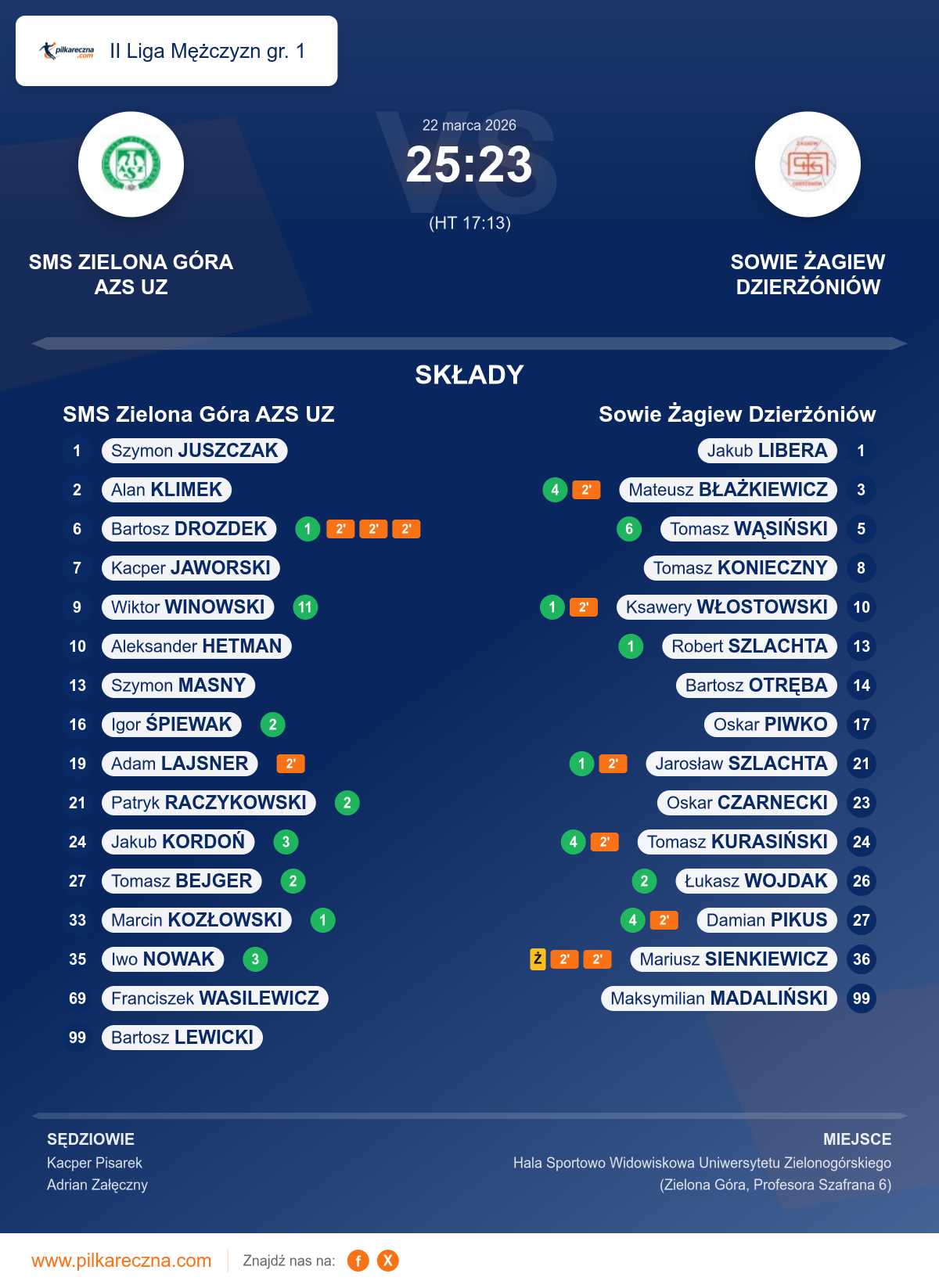 Wynik: 25–23 (HT 17–13)