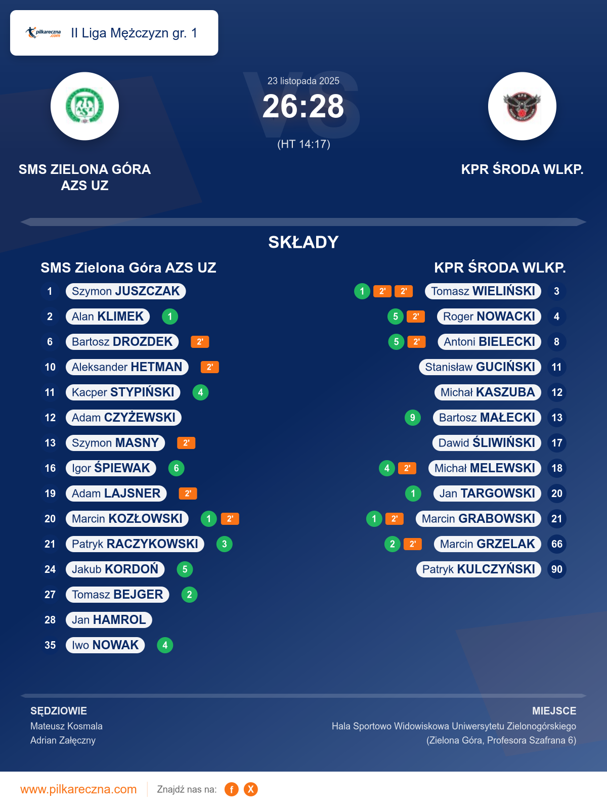 SMS Zielona Góra AZS UZ — KPR ŚRODA WLKP.