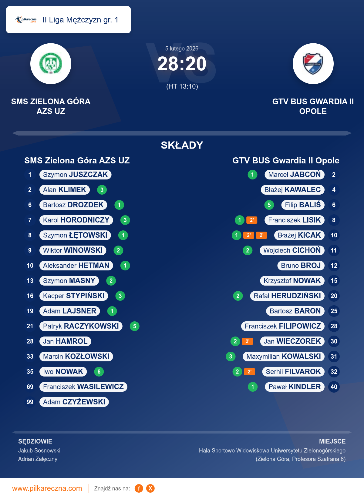 SMS Zielona Góra AZS UZ 28–20 GTV BUS Gwardia II Opole