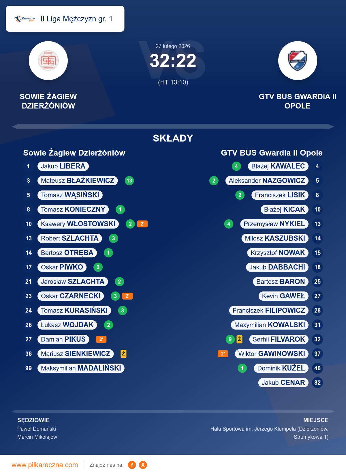 Wynik: 32–22 (HT 13–10)