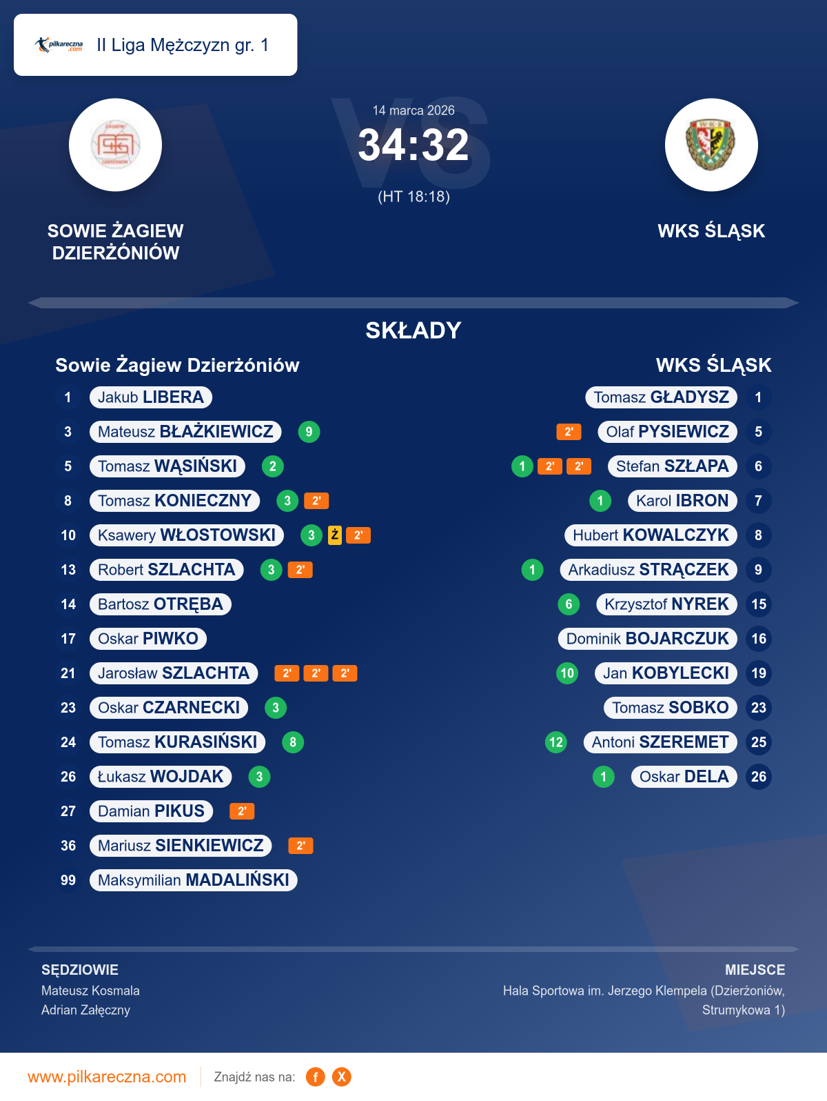 Sędziowali: Mateusz Kosmala, Adrian Załęczny