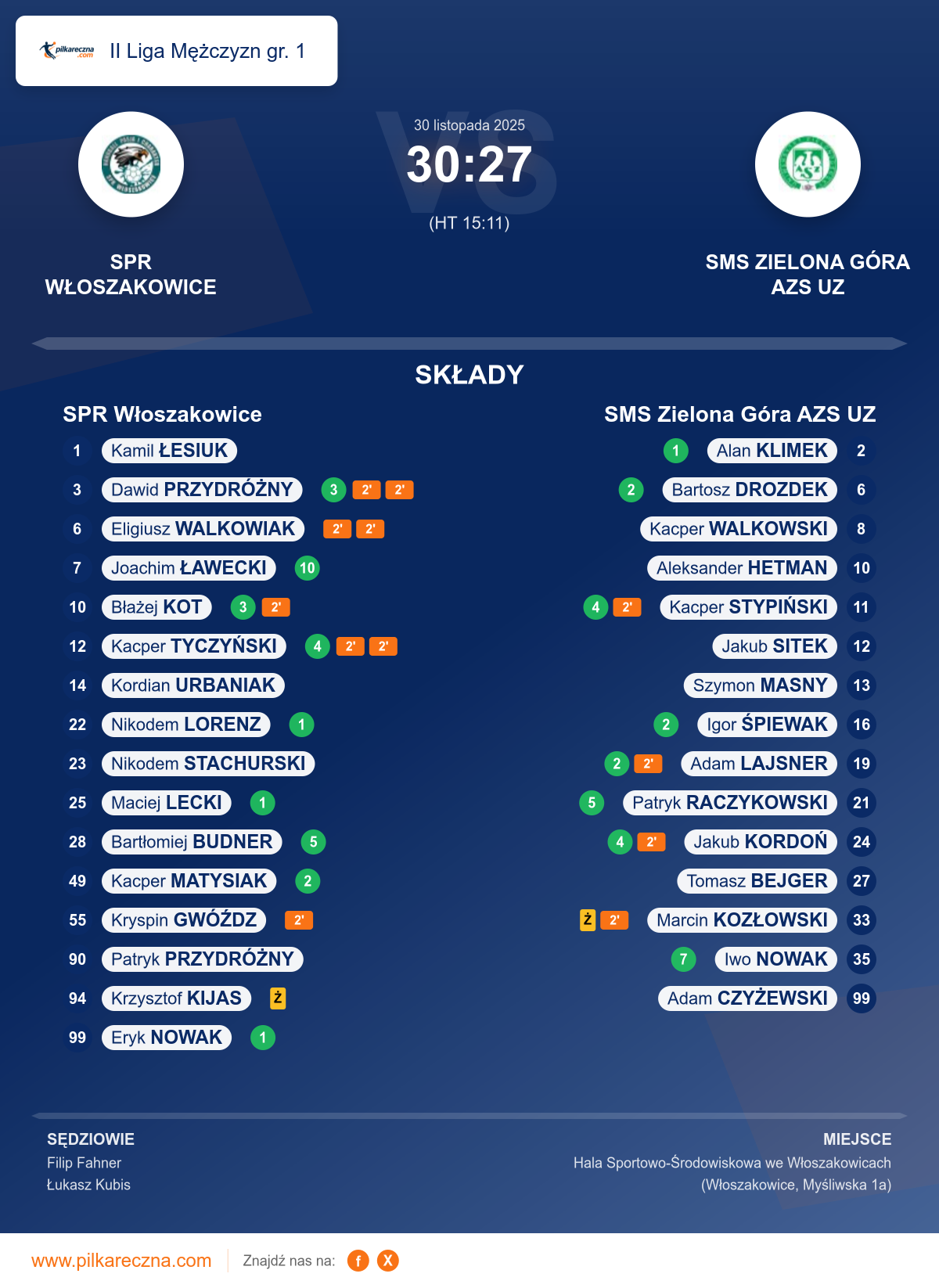 SPR Włoszakowice 30–27 SMS Zielona Góra AZS UZ