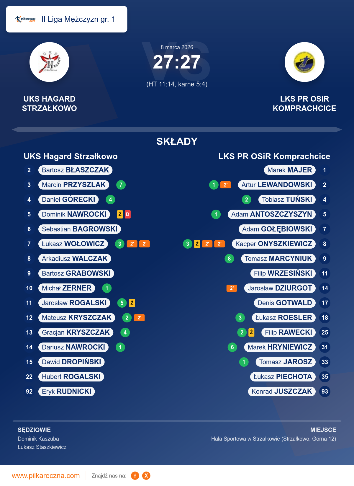 UKS Hagard Strzałkowo 27–27 LKS PR OSiR Komprachcice