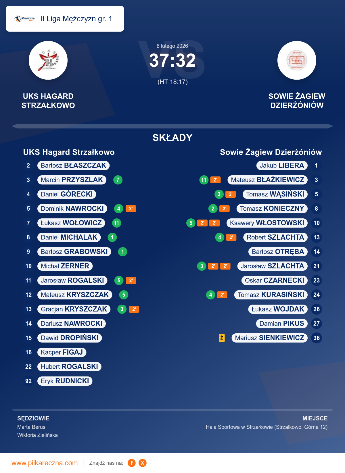 UKS Hagard Strzałkowo 37–32 Sowie Żagiew Dzierżóniów
