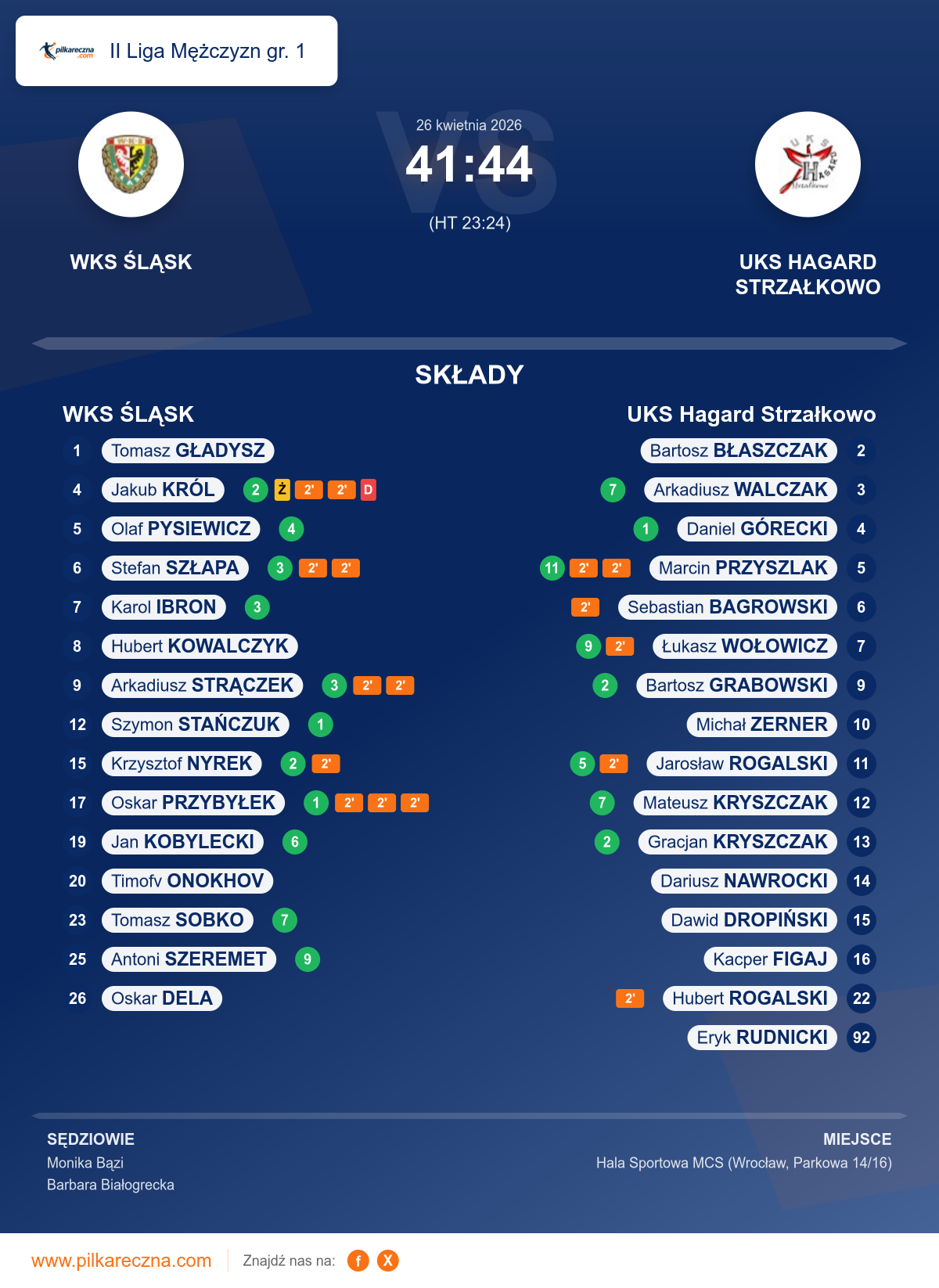 Wynik: 41–44 (HT 23–24)