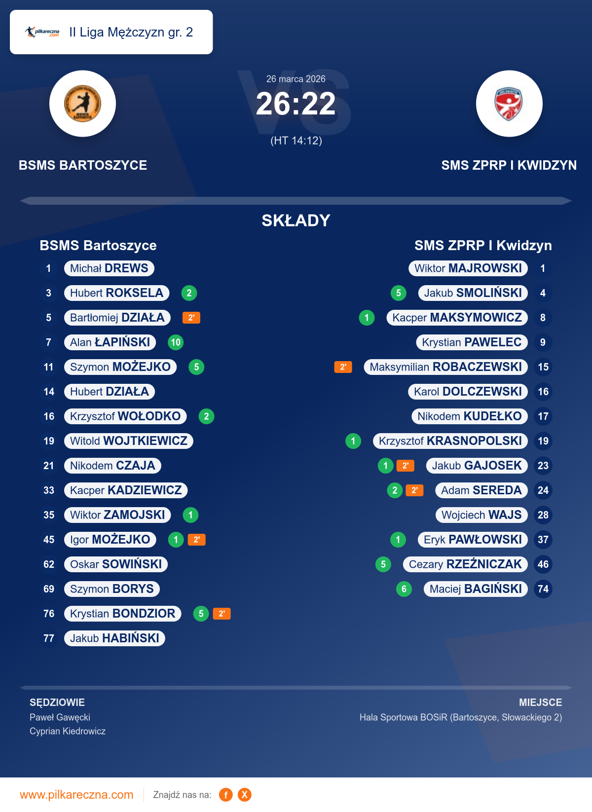 Wynik: 26–22 (HT 14–12)