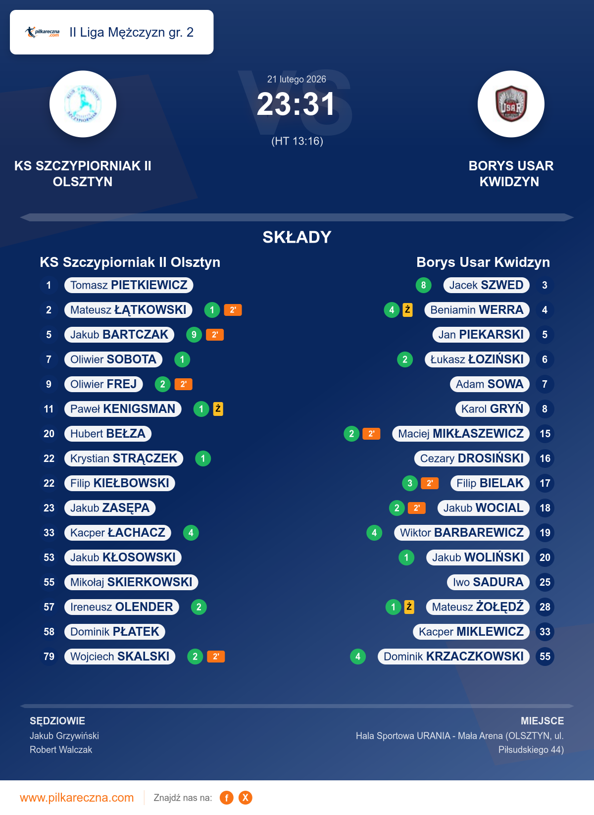 KS Szczypiorniak II Olsztyn 23–31 Borys Usar Kwidzyn