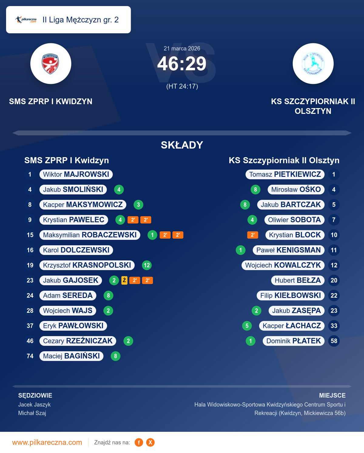 SMS ZPRP I Kwidzyn 46–29 KS Szczypiorniak II Olsztyn