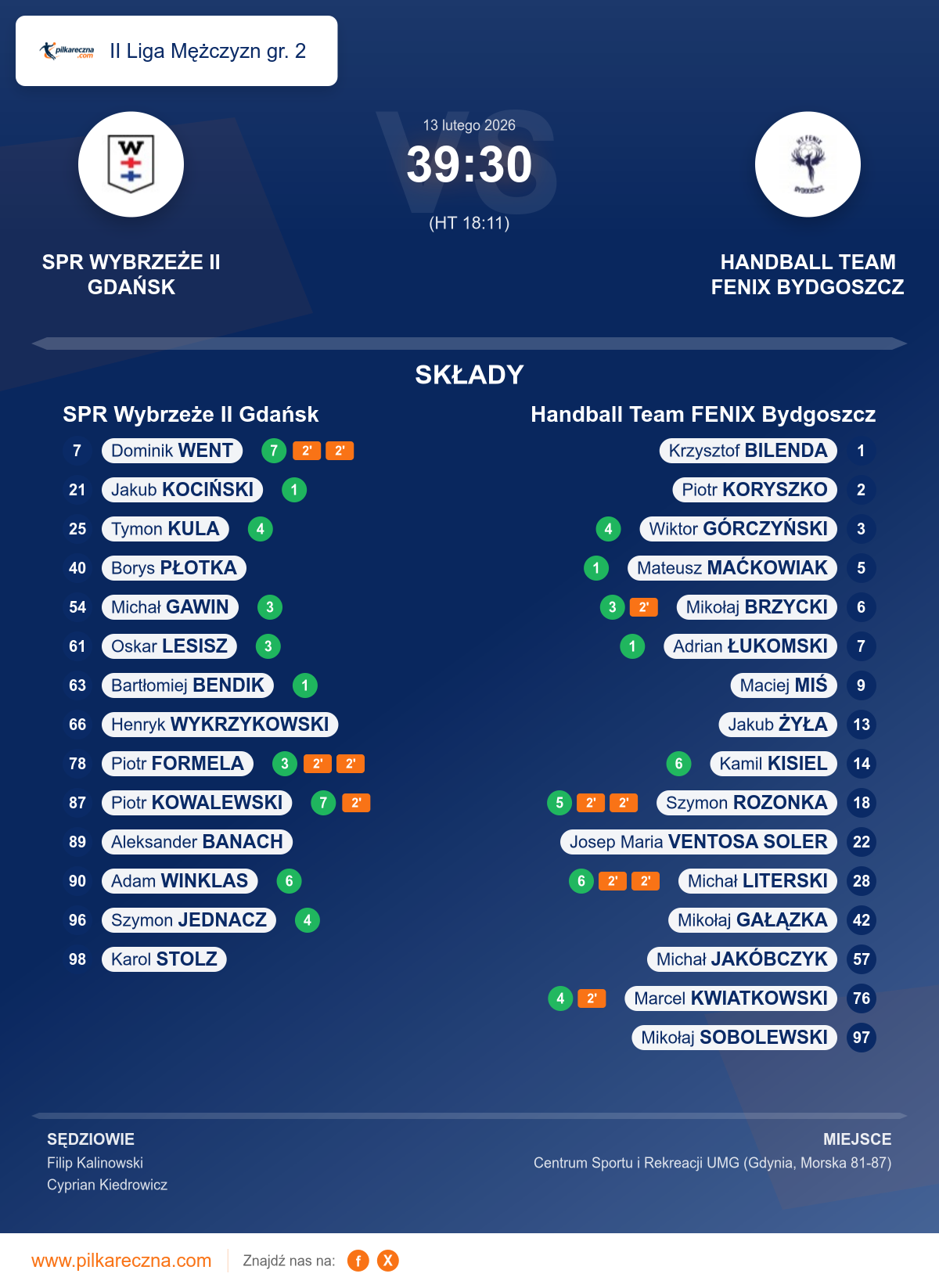 SPR Wybrzeże II Gdańsk 39–30 Handball Team FENIX Bydgoszcz