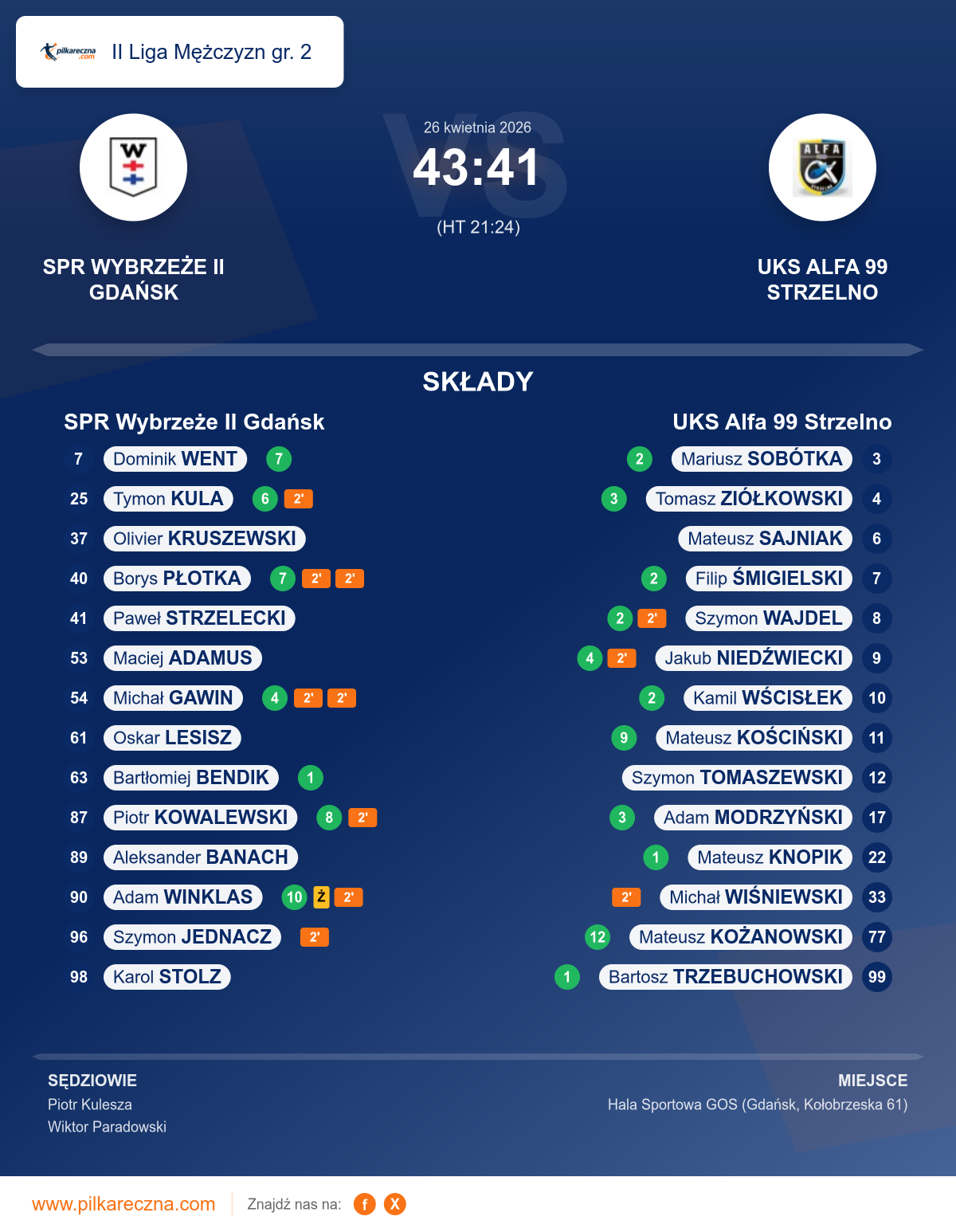 Wynik: 43–41 (HT 21–24)