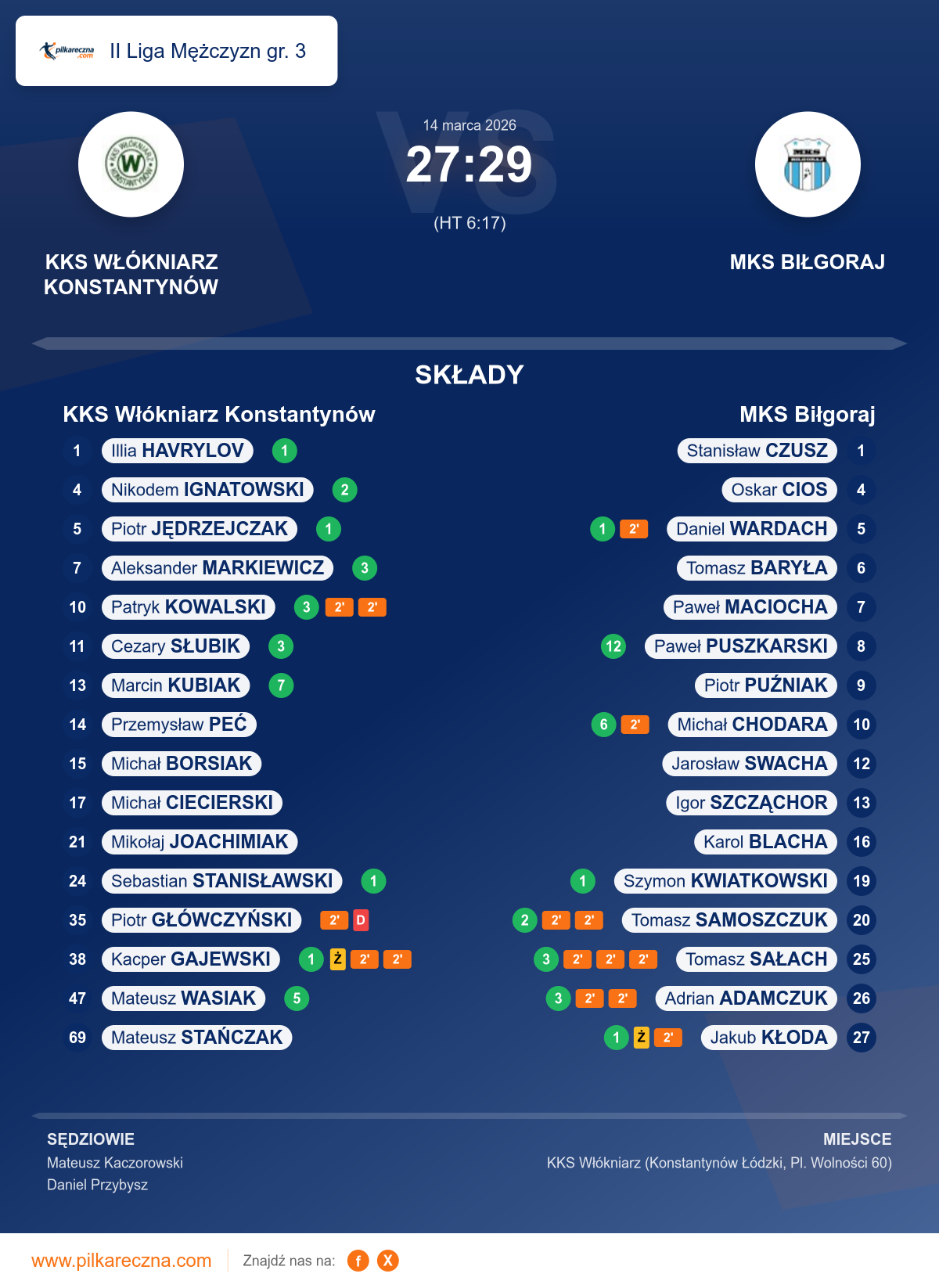 KKS Włókniarz Konstantynów 27–29 MKS Biłgoraj