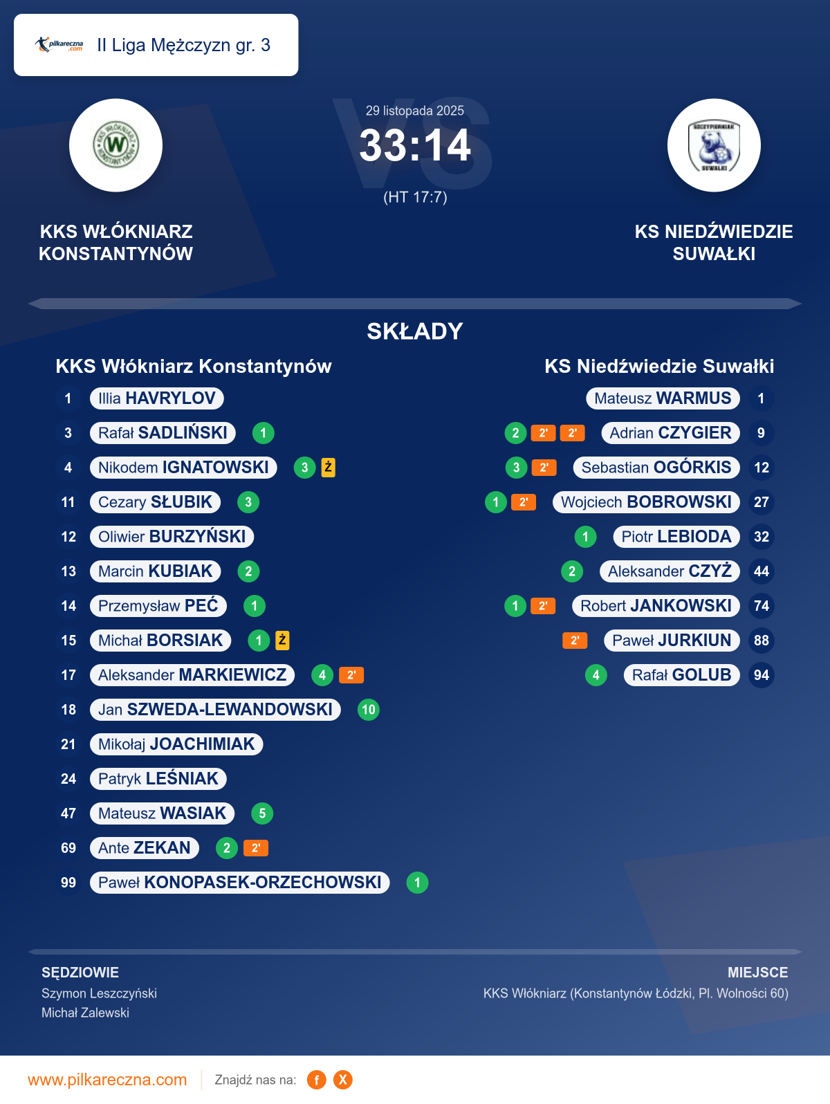 KKS Włókniarz Konstantynów 33–14 KS Niedźwiedzie Suwałki