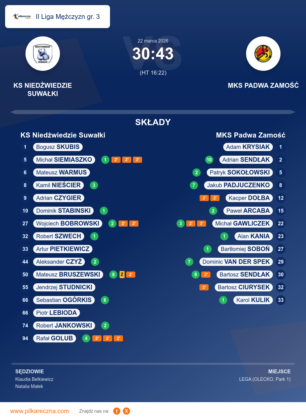 KS Niedźwiedzie Suwałki 30–43 MKS Padwa Zamość