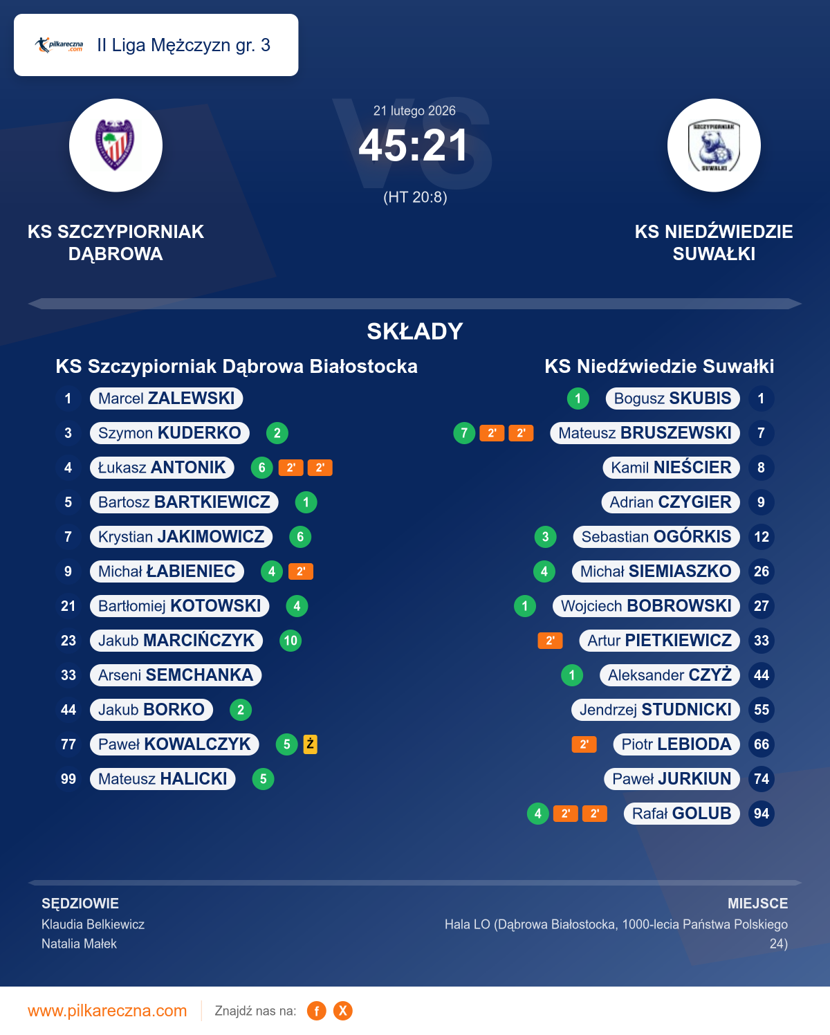 KS Szczypiorniak Dąbrowa Białostocka 45–21 KS Niedźwiedzie Suwałki