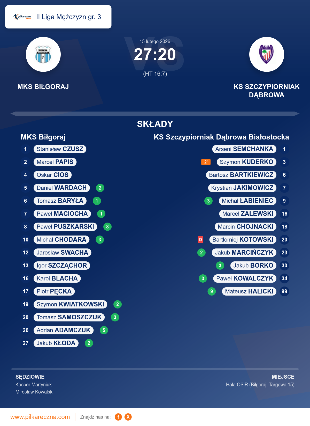Sędziowali: Kacper Martyniuk, Mirosław Kowalski