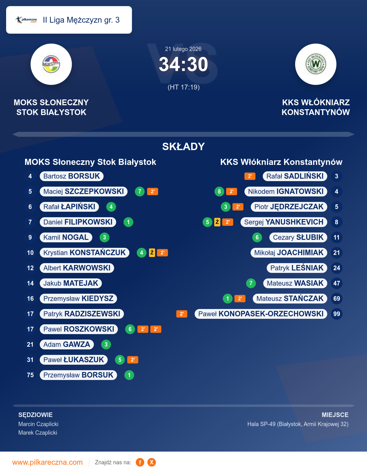 MOKS Słoneczny Stok Białystok 34–30 KKS Włókniarz Konstantynów