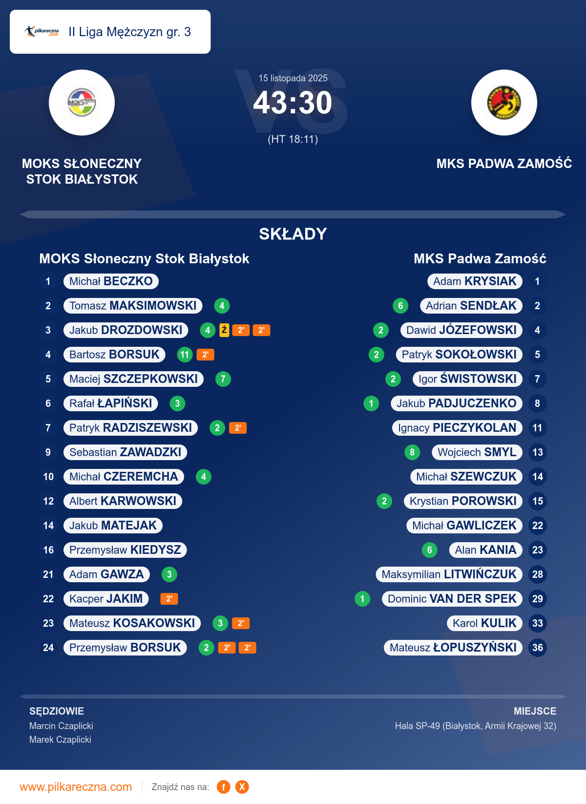 MOKS Słoneczny Stok Białystok 43–30 MKS Padwa Zamość