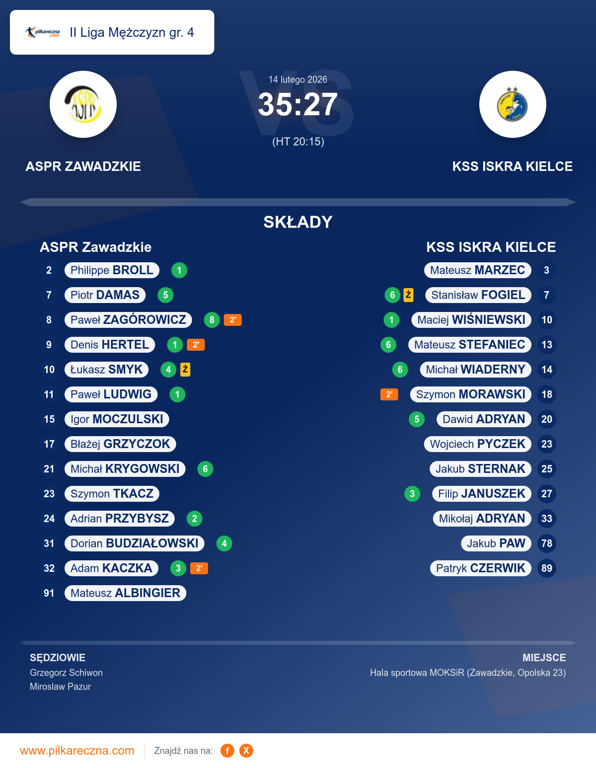 ASPR Zawadzkie 35–27 KSS ISKRA KIELCE