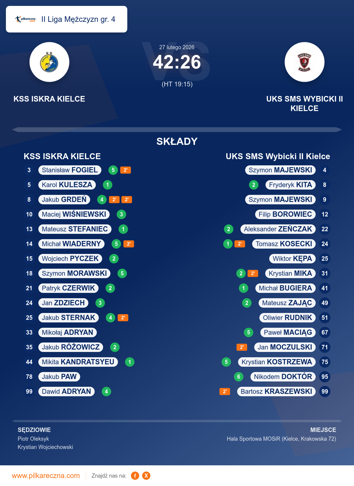 KSS ISKRA KIELCE 42–26 UKS SMS Wybicki II Kielce