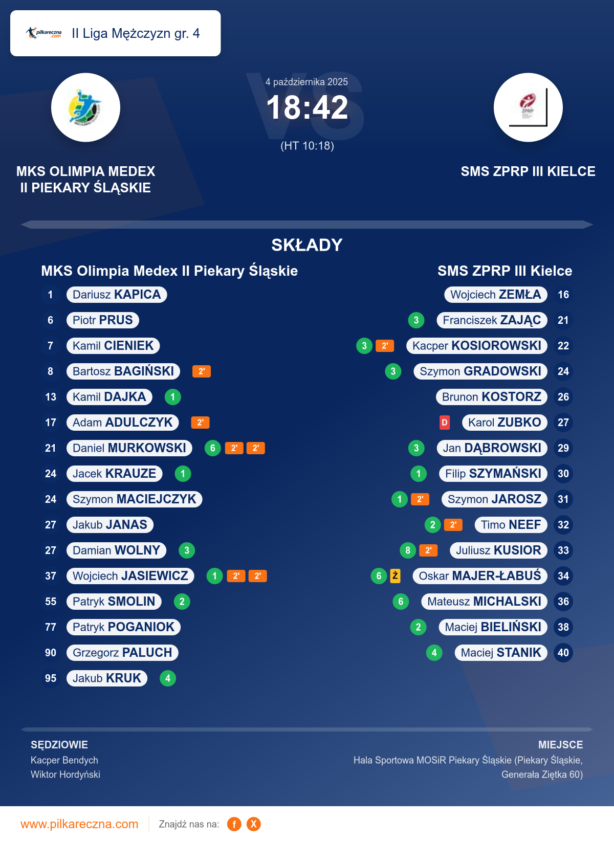 MKS Olimpia Medex II Piekary Śląskie 18–42 SMS ZPRP III Kielce