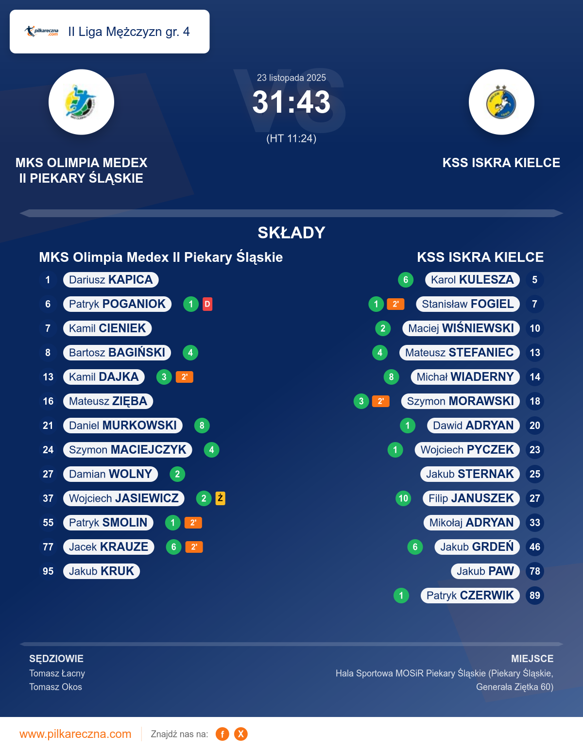 MKS Olimpia Medex II Piekary Śląskie 31–43 KSS ISKRA KIELCE