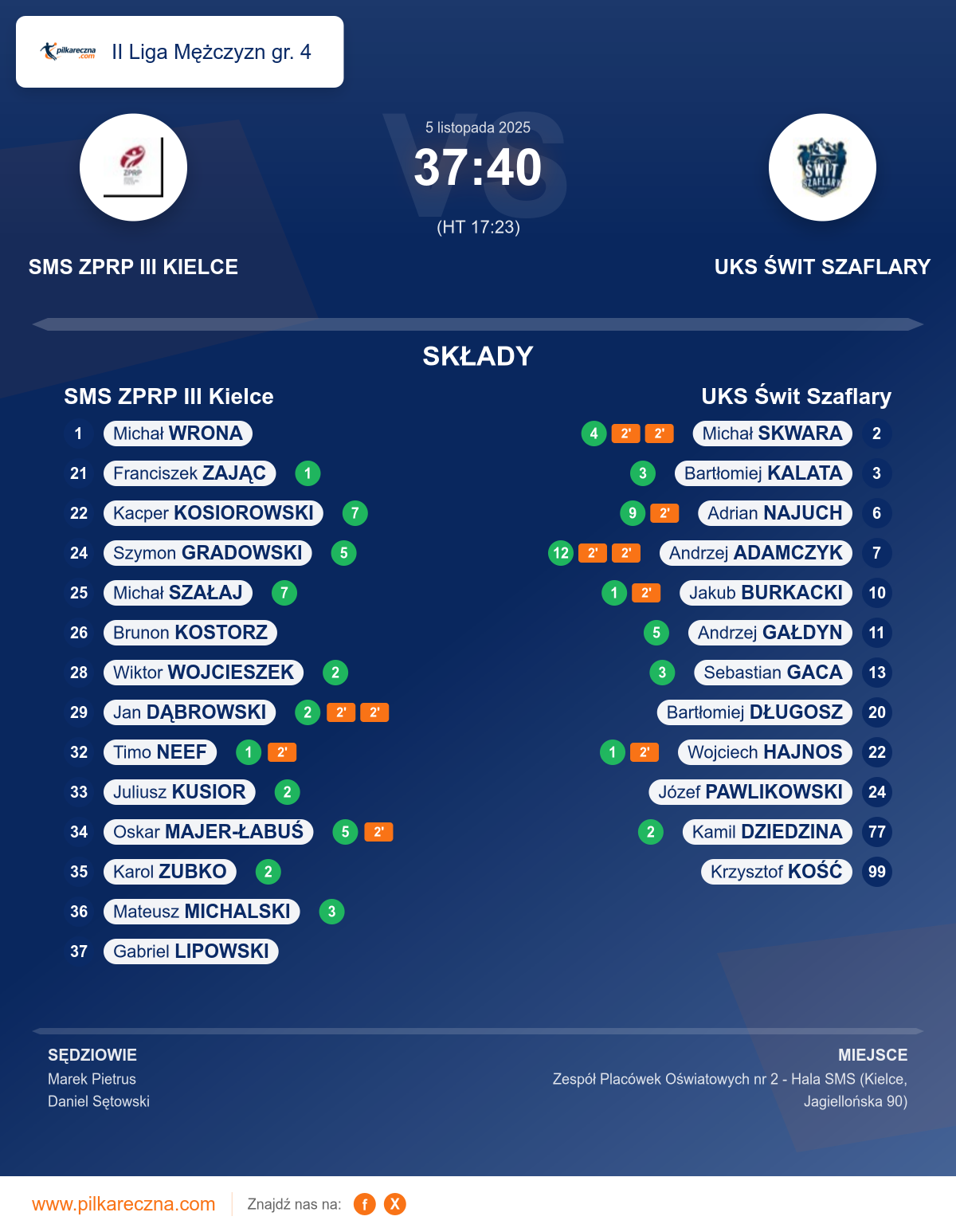SMS ZPRP III Kielce 37–40 UKS Świt Szaflary