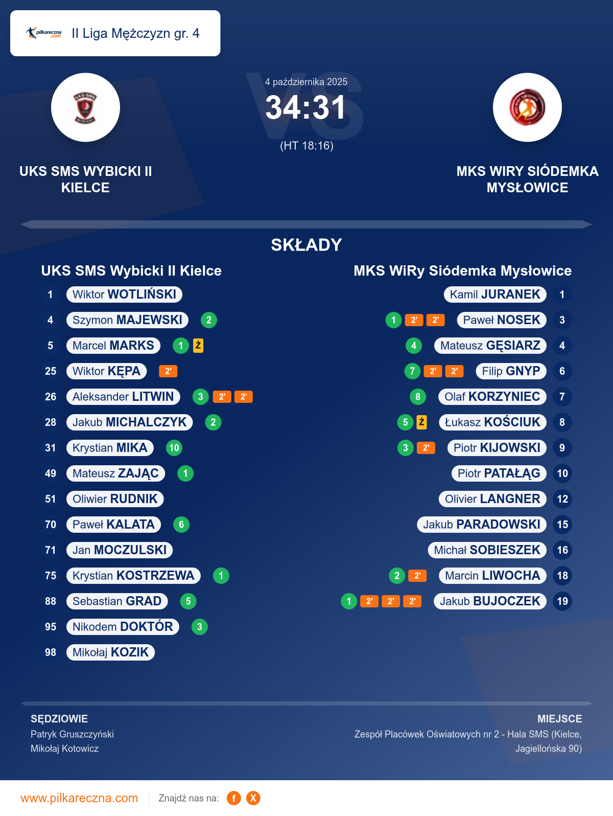 UKS SMS Wybicki II Kielce 34–31 MKS WiRy Siódemka Mysłowice
