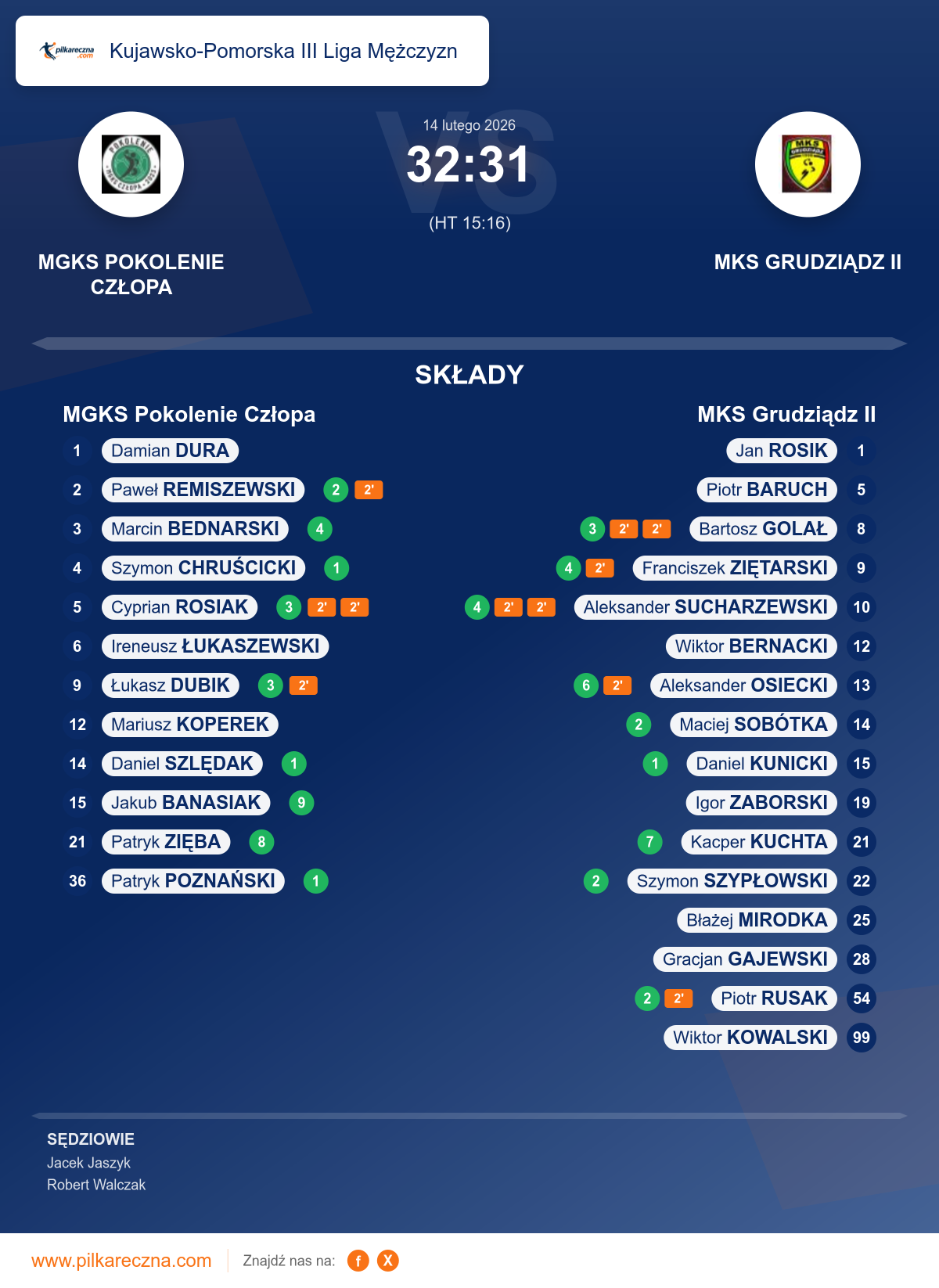 Sędziowali: Jacek Jaszyk, Robert Walczak