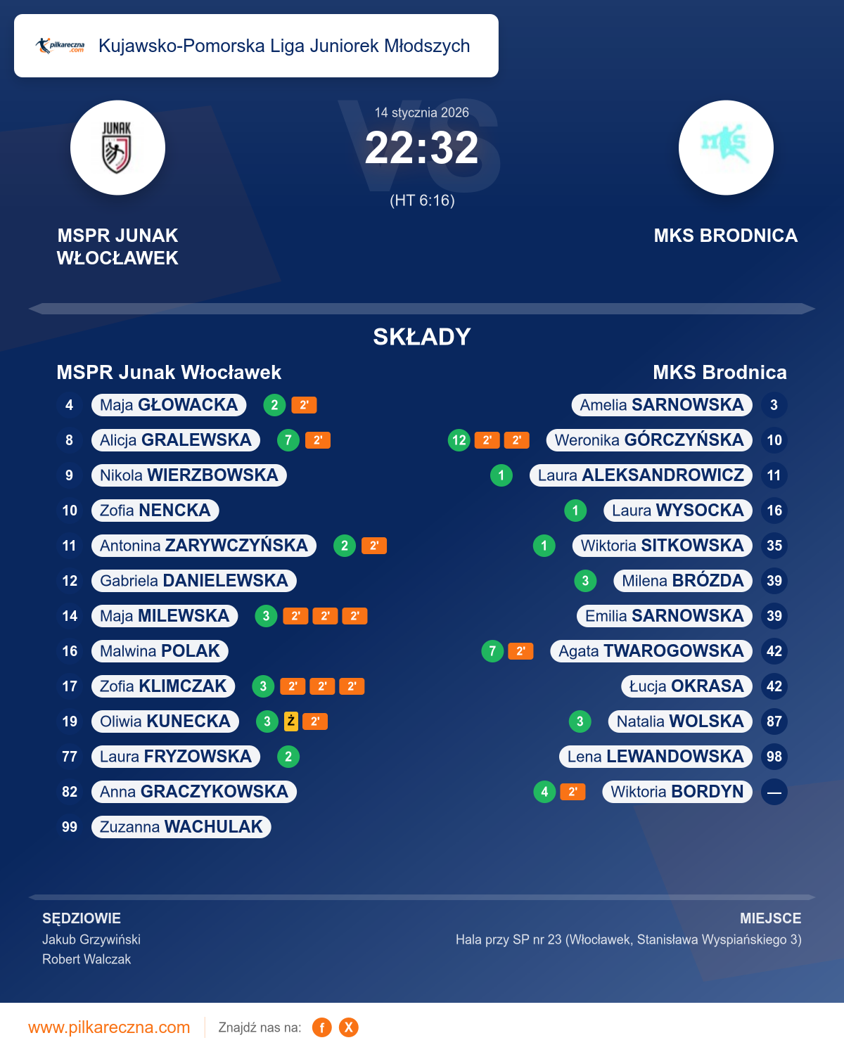 Zawodnicy: Weronika Górczyńska (12), Agata Twarogowska (7), Wiktoria Bordyn (4), Milena Brózda (3), Natalia Wolska (3), Laura Aleksandrowicz (1), Laura Wysocka (1), Wiktoria Sitkowska (1), Amelia Sarnowska, Emilia Sarnowska, Lena Lewandowska, Łucja Okrasa