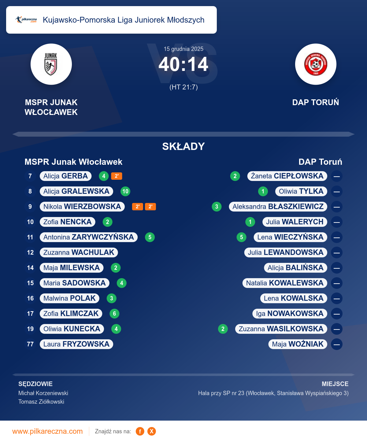Sędziowali: Michał Korzeniewski, Tomasz Ziółkowski