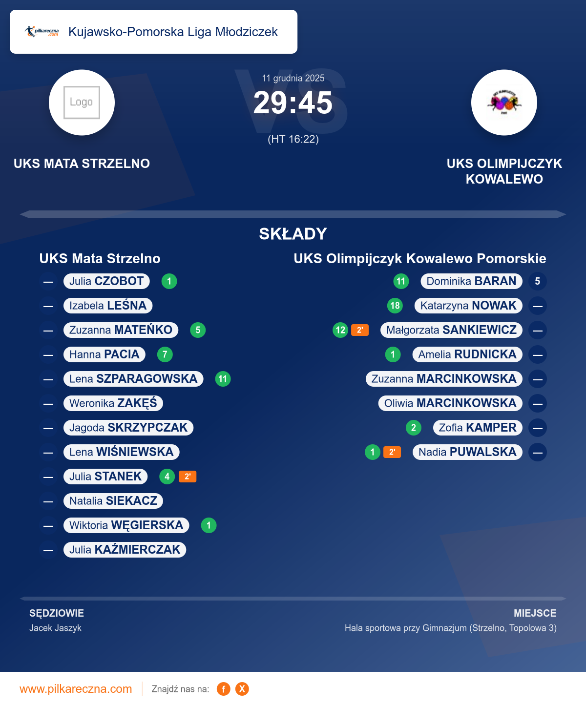 UKS Mata Strzelno 29–45 UKS Olimpijczyk Kowalewo Pomorskie