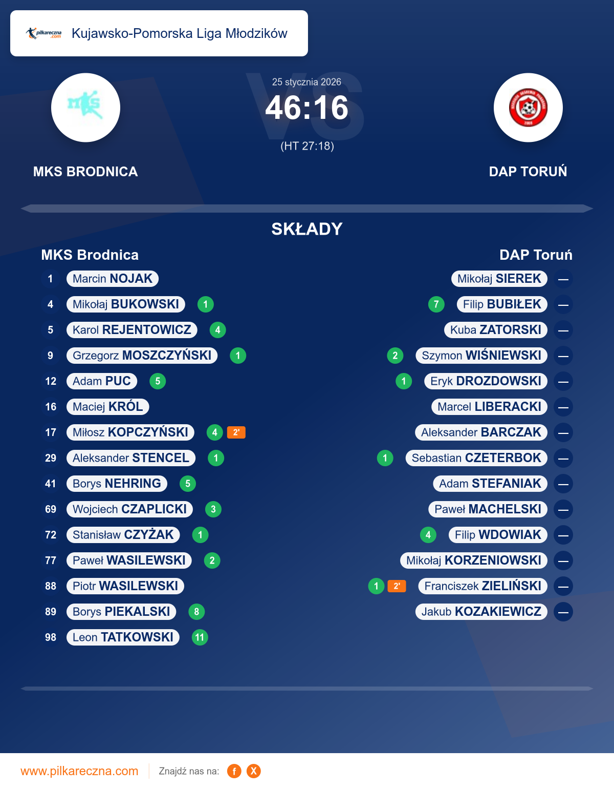 Wynik: 46–16 (HT 27–18)
