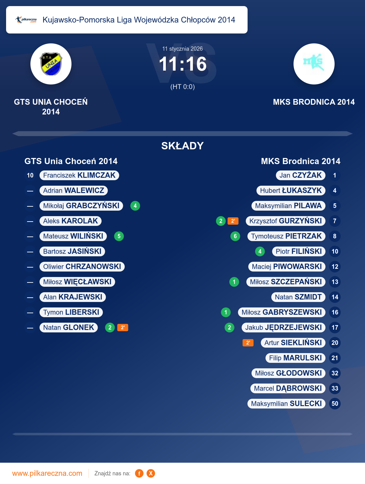 Bramkarze: Bartosz Jasiński, Oliwier Chrzanowski