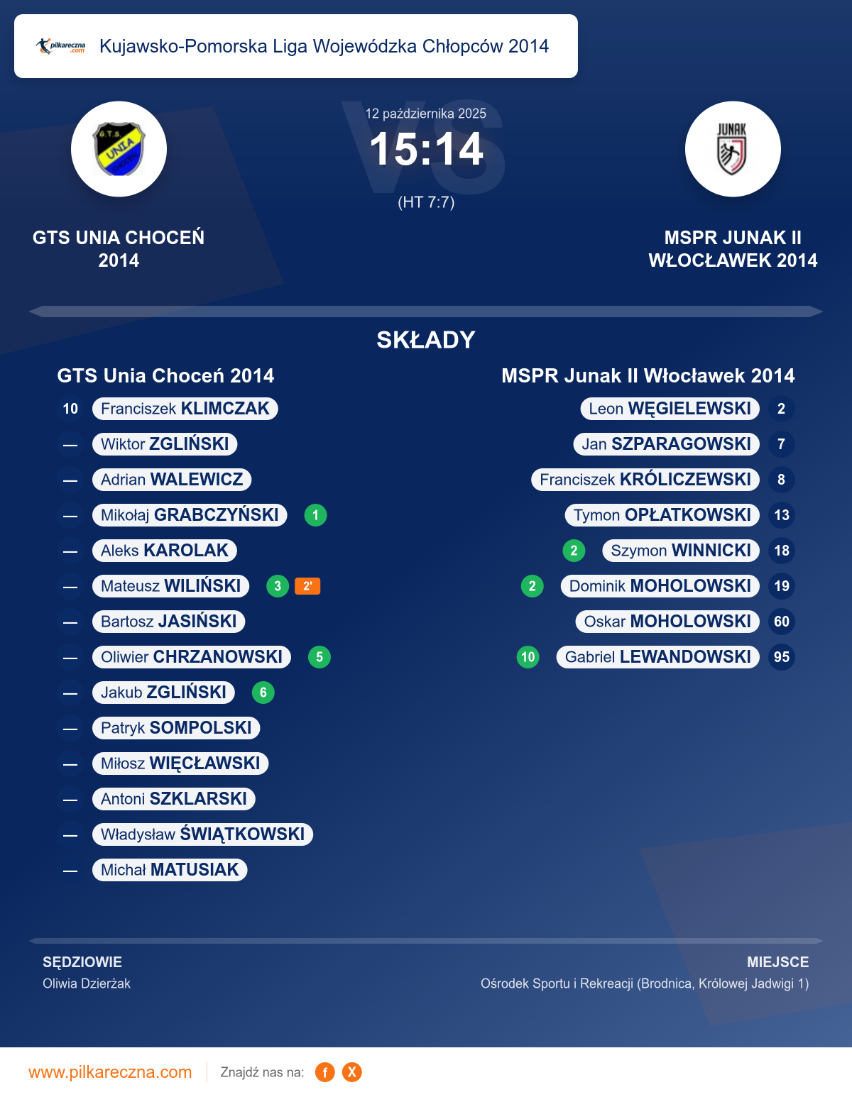 Wynik: 15–14 (HT 7–7)