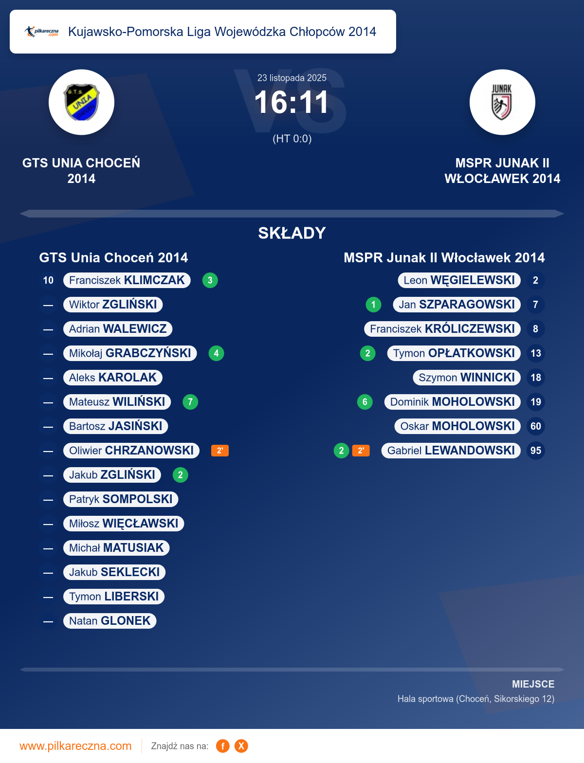 Bramkarze: Bartosz Jasiński, Oliwier Chrzanowski