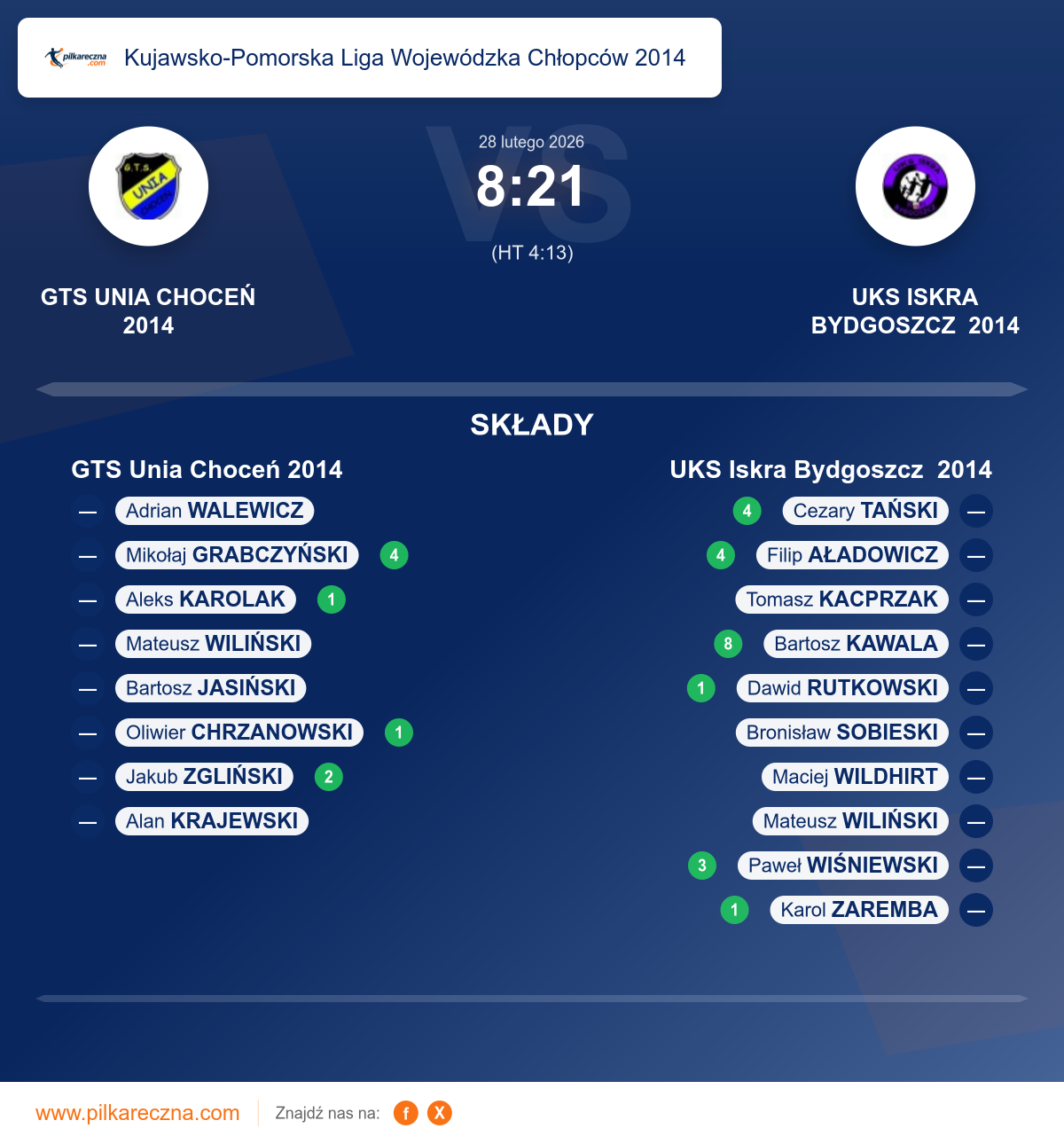 Bramkarze: Bartosz Jasiński, Oliwier Chrzanowski