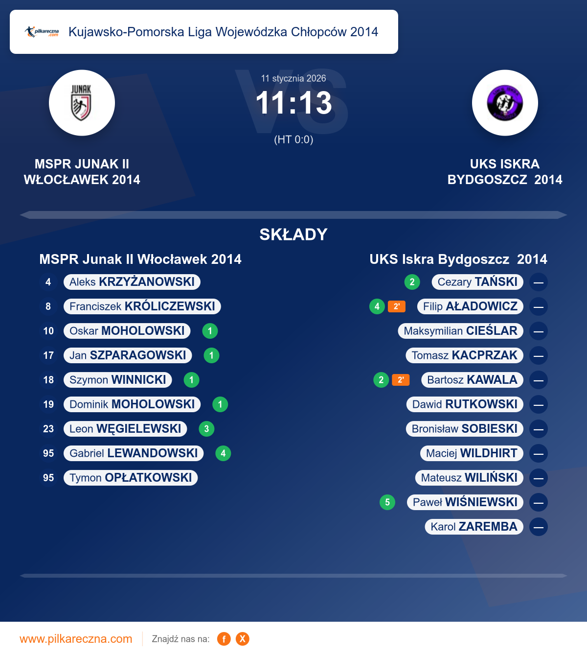 Zawodnicy: Gabriel Lewandowski (4), Dominik Moholowski (1), Jan Szparagowski (1), Oskar Moholowski (1), Szymon Winnicki (1), Aleks Krzyżanowski, Franciszek Króliczewski, Tymon Opłatkowski
