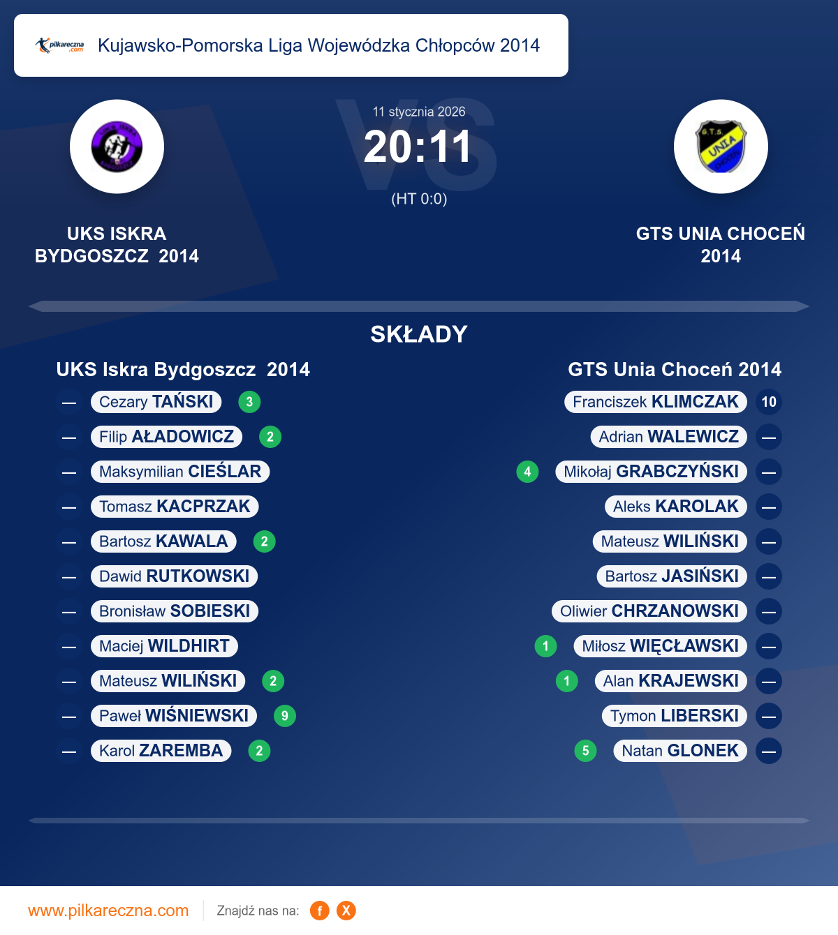 Bramkarze: Bartosz Jasiński, Oliwier Chrzanowski