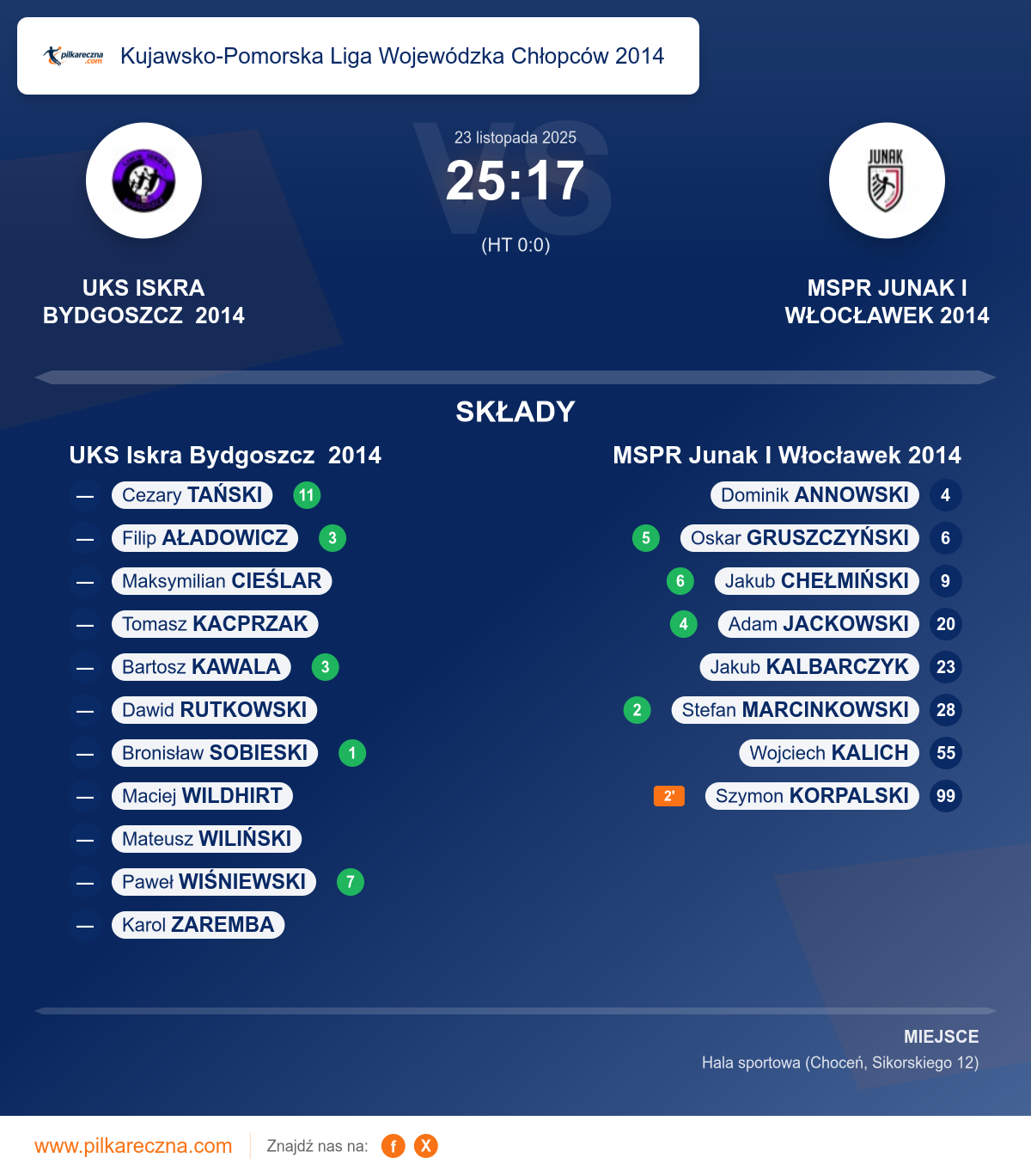 UKS Iskra Bydgoszcz 2014 25–17 MSPR Junak I Włocławek 2014