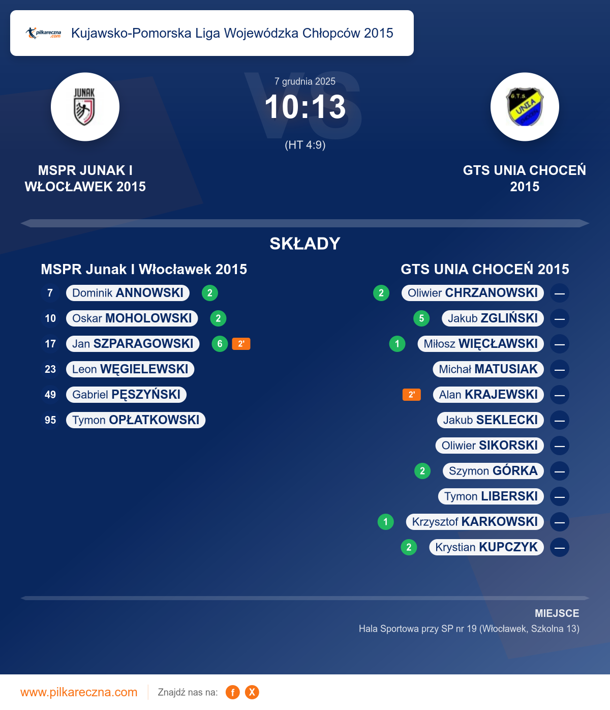 Zawodnicy: Jan Szparagowski (6), Dominik Annowski (2), Oskar Moholowski (2), Gabriel Pęszyński, Tymon Opłatkowski
