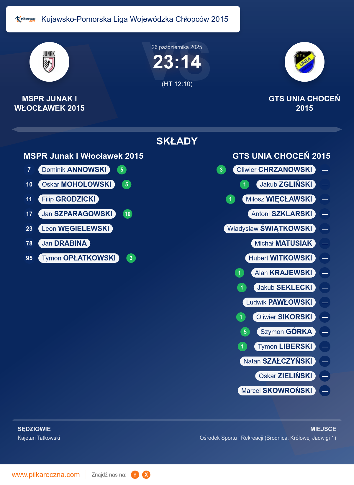 Zawodnicy: Jan Szparagowski (10), Dominik Annowski (5), Oskar Moholowski (5), Tymon Opłatkowski (3), Filip Grodzicki, Jan Drabina