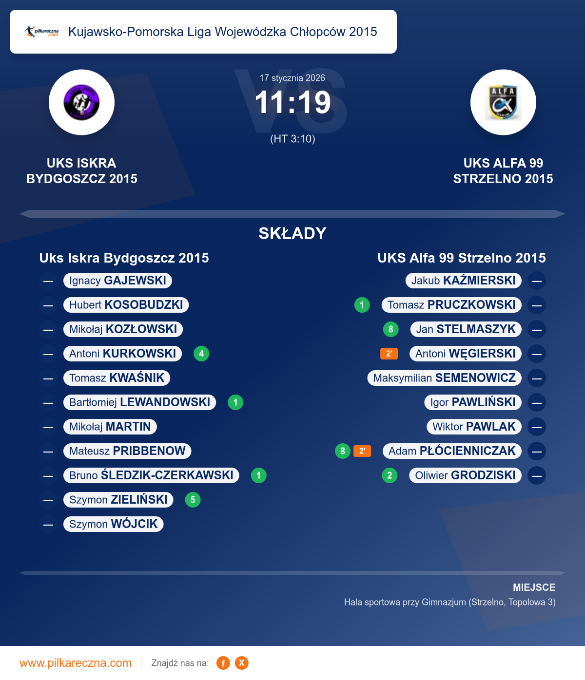 Uks Iskra Bydgoszcz 2015 11–19 UKS Alfa 99 Strzelno 2015