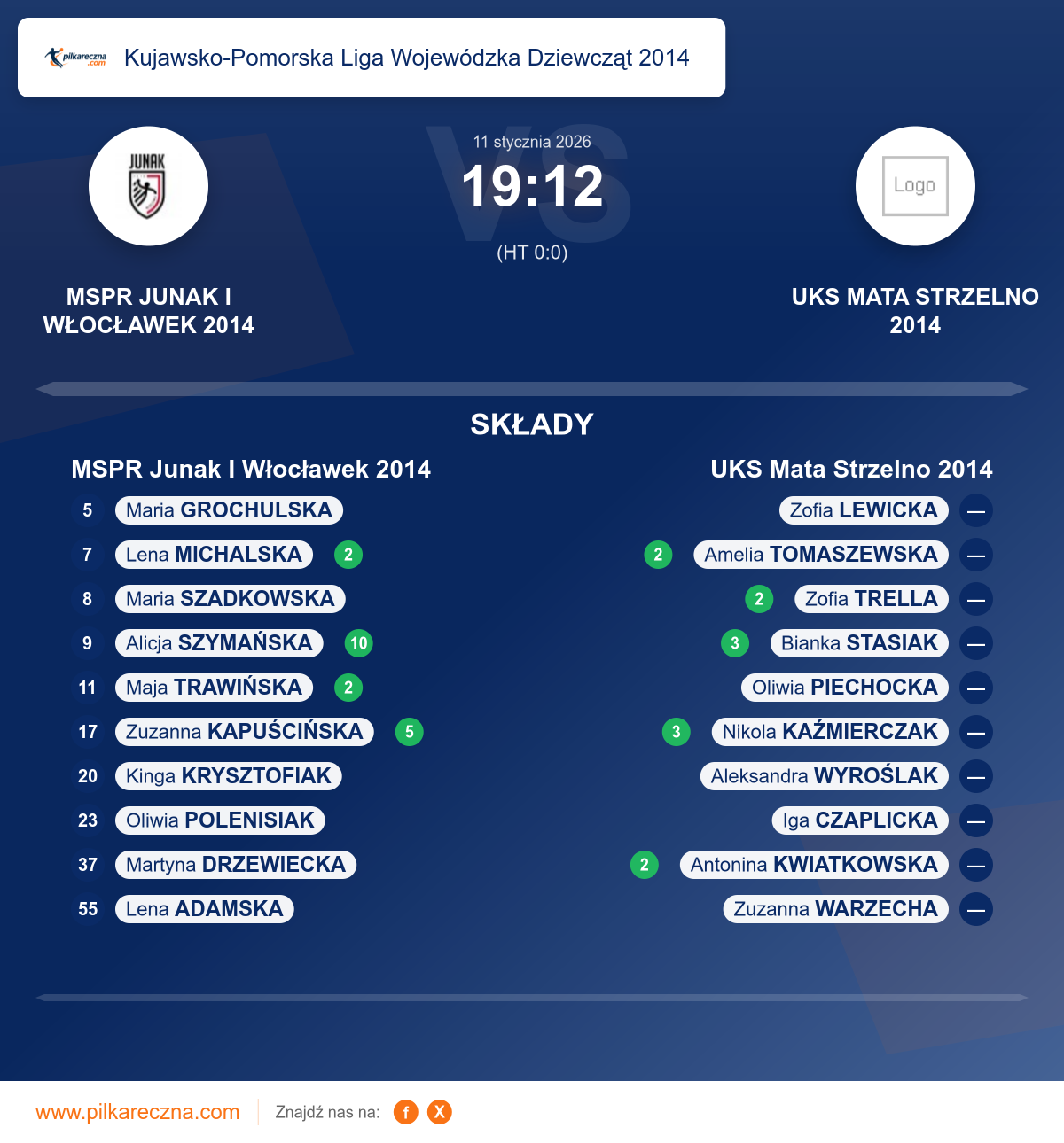 Zawodnicy: Bianka Stasiak (3), Nikola Kaźmierczak (3), Amelia Tomaszewska (2), Antonina Kwiatkowska (2), Zofia Trella (2), Aleksandra Wyroślak, Iga Czaplicka, Oliwia Piechocka, Zofia Lewicka, Zuzanna Warzecha