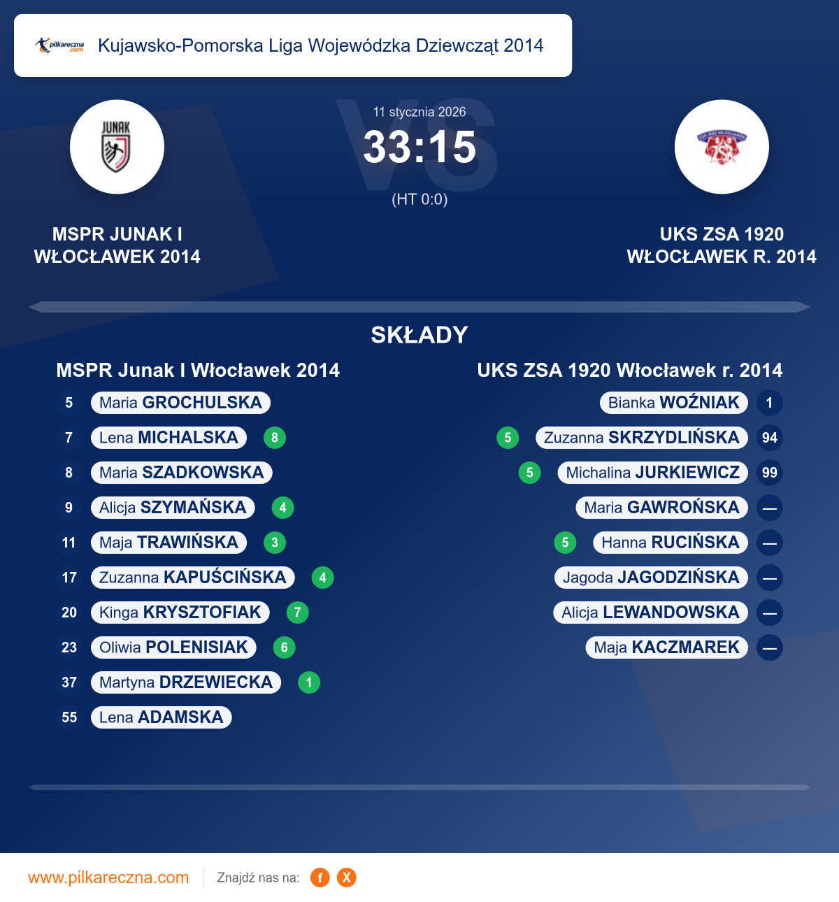 MSPR Junak I Włocławek 2014 33–15 UKS ZSA 1920 Włocławek r. 2014