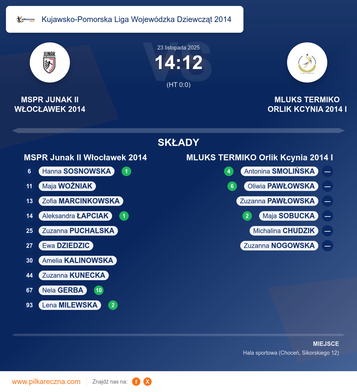 Bramkarze: Zuzanna Kunecka