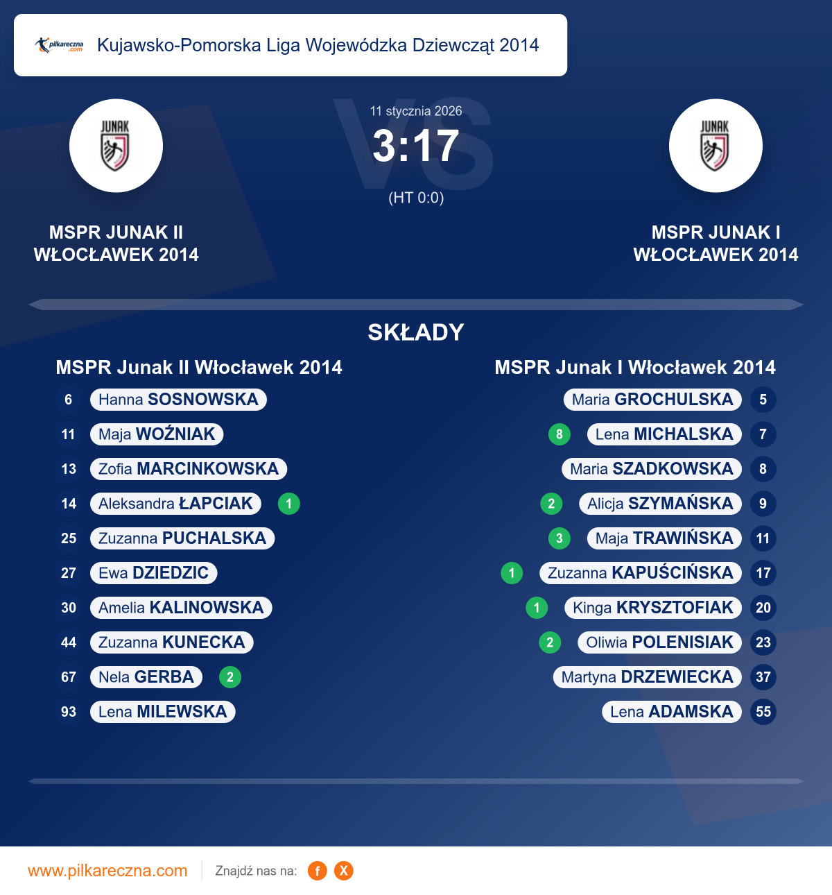 Zawodnicy: Lena Michalska (8), Maja Trawińska (3), Alicja Szymańska (2), Oliwia Polenisiak (2), Kinga Krysztofiak (1), Zuzanna Kapuścińska (1), Lena Adamska, Maria Grochulska, Maria Szadkowska