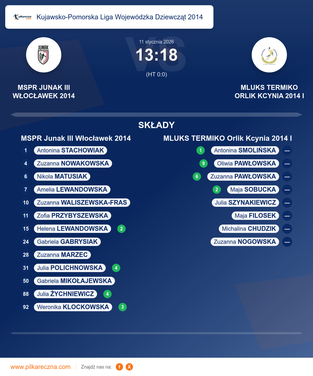 Zawodnicy: Oliwia Pawłowska (9), Zuzanna Pawłowska (6), Maja Sobucka (2), Antonina Smolińska (1), Julia Szynakiewicz, Maja Filosek, Michalina Chudzik, Zuzanna Nogowska