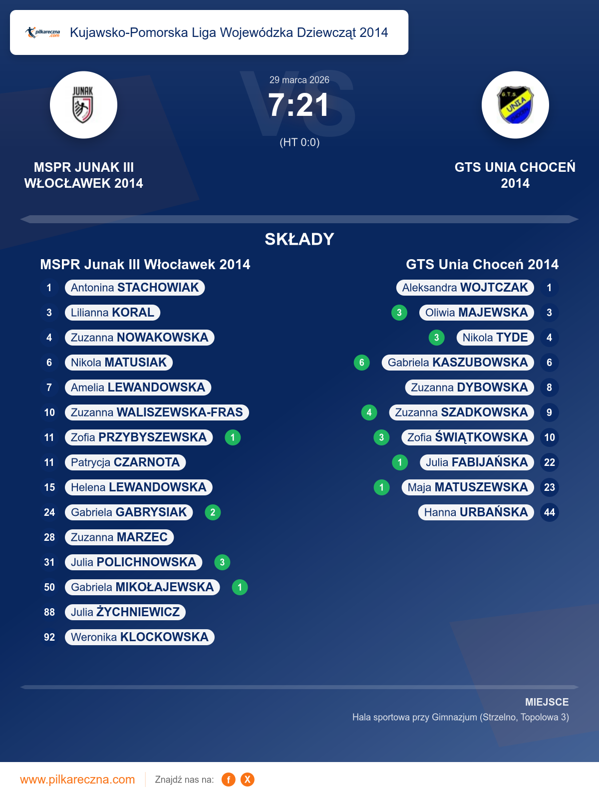 Zawodnicy: Gabriela Kaszubowska (6), Zuzanna Szadkowska (4), Nikola Tyde (3), Oliwia Majewska (3), Zofia Świątkowska (3), Julia Fabijańska (1), Maja Matuszewska (1), Aleksandra Wojtczak, Hanna Urbańska, Zuzanna Dybowska