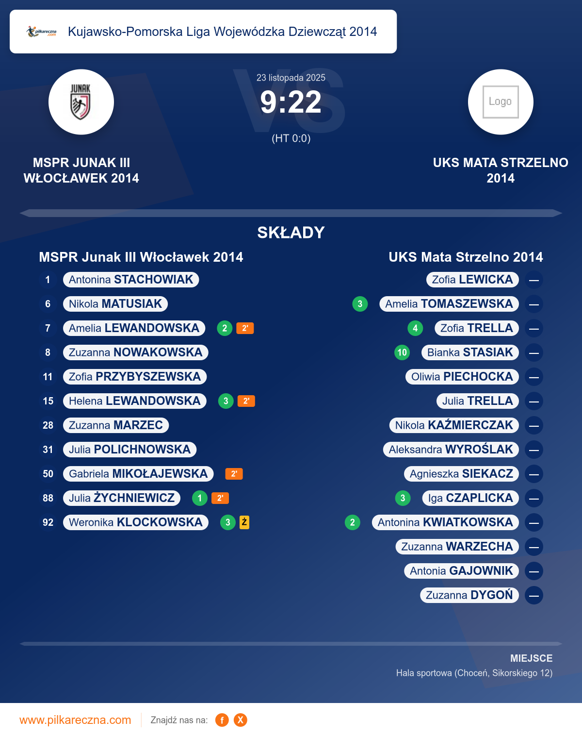 Zawodnicy: Bianka Stasiak (10), Zofia Trella (4), Amelia Tomaszewska (3), Iga Czaplicka (3), Antonina Kwiatkowska (2), Agnieszka Siekacz, Aleksandra Wyroślak, Antonia Gajownik, Julia Trella, Nikola Kaźmierczak, Oliwia Piechocka, Zofia Lewicka, Zuzanna Dygoń, Zuzanna Warzecha