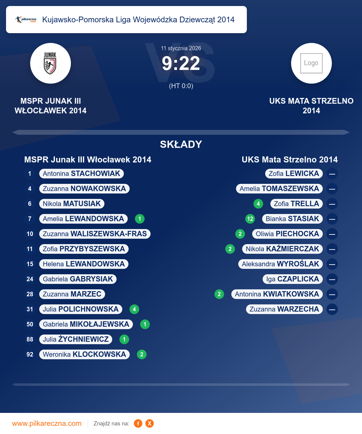 Zawodnicy: Bianka Stasiak (12), Zofia Trella (4), Antonina Kwiatkowska (2), Nikola Kaźmierczak (2), Oliwia Piechocka (2), Aleksandra Wyroślak, Amelia Tomaszewska, Iga Czaplicka, Zofia Lewicka, Zuzanna Warzecha
